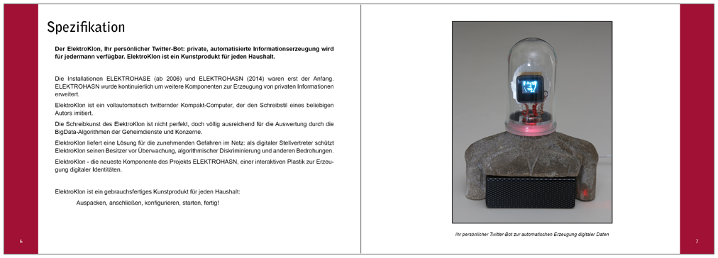 Alle Details von unserem Kunstprodukt ElektroKlon gibt es ab sofort in einer hochwertigen Hochglanz-Broschüre nachzulesen.